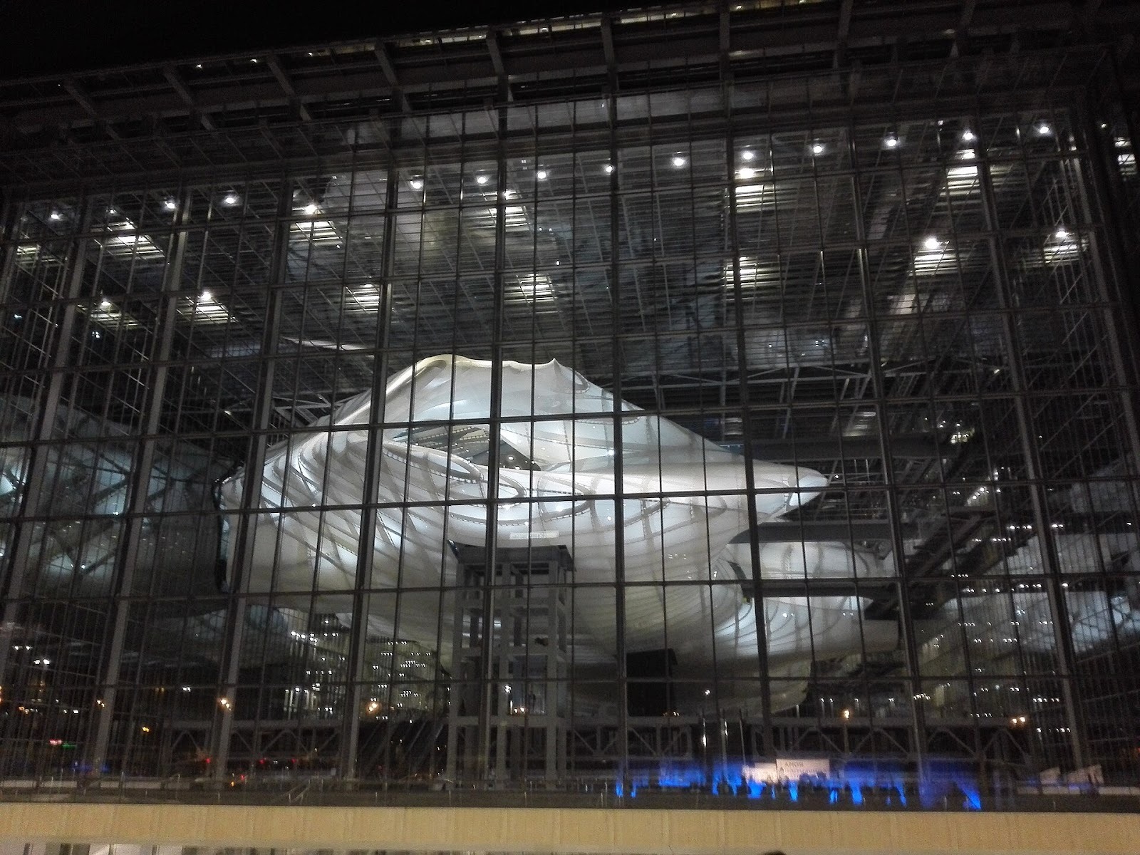 ガラスの立方体の中に「雲」が浮かぶような独創的な構造を持ち、国際会議や文化イベントが開催される最先端の展示施設として知られています。